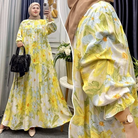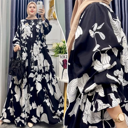 Gamis Lengan Balon Lonceng Rayon Premium Busui friendly